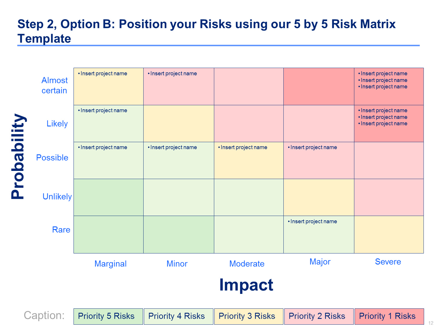 Easily list, assess, prioritize and mitigate your key risks & issues by leveraging this Risk Assessment Matrix, Risk Register Template and Issue Register Template. Created by ex-McKinsey, Deloitte & BCG Management Consultants, after more than 300 hours of work. Don’t reinvent the wheel.